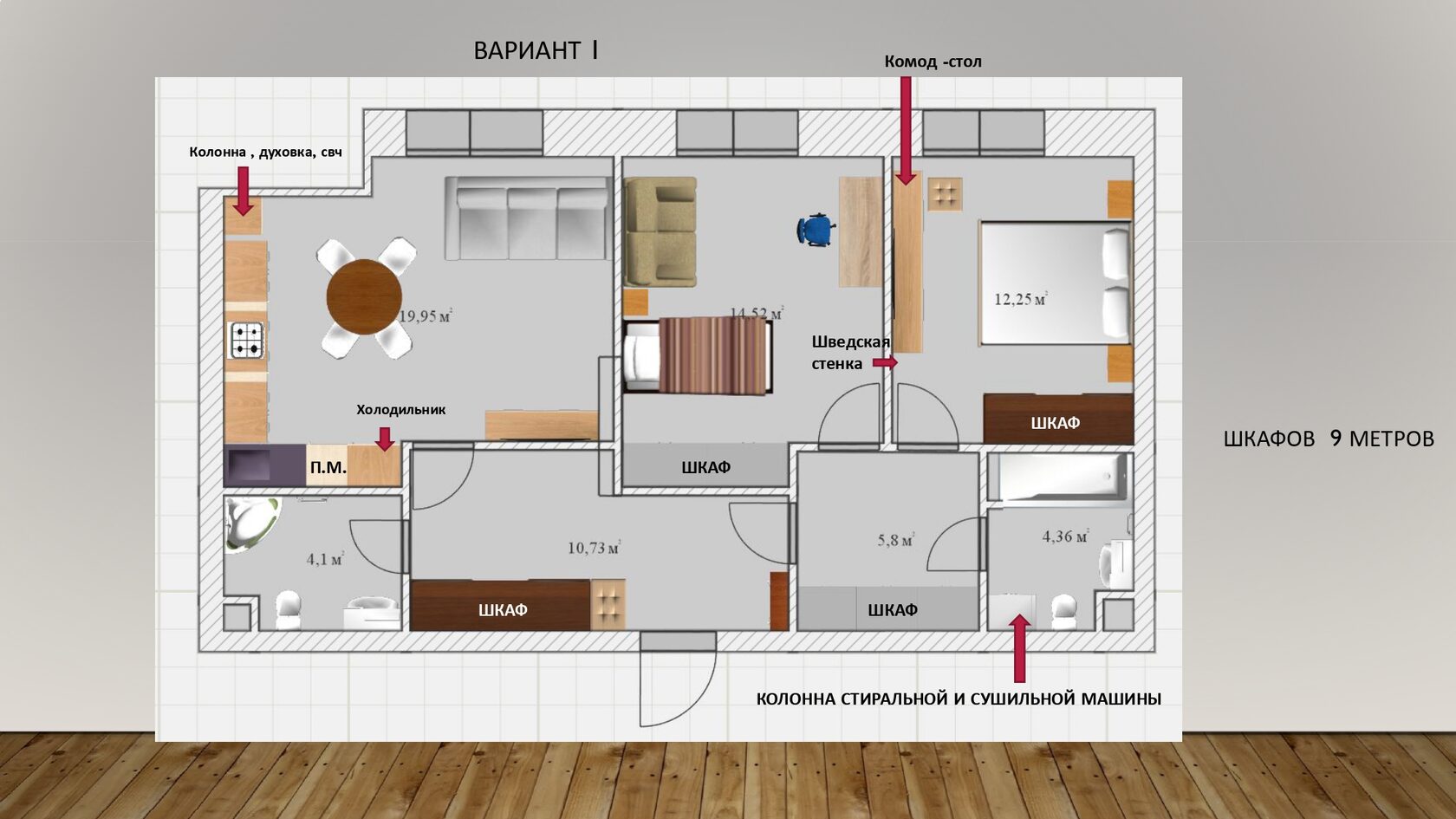 - увеличенная зона хранения, в старой квартире она составляет 6,2 погонных метра.