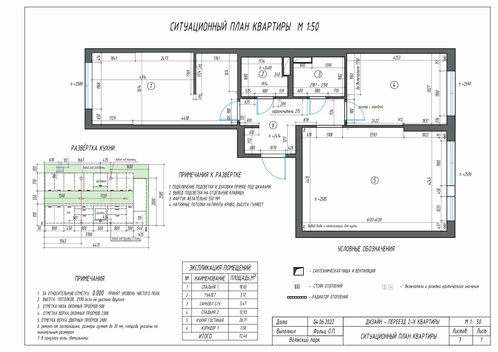Ситуационный план квартиры со всеми размерами, чтобы было проще ориентироваться в пространстве.
