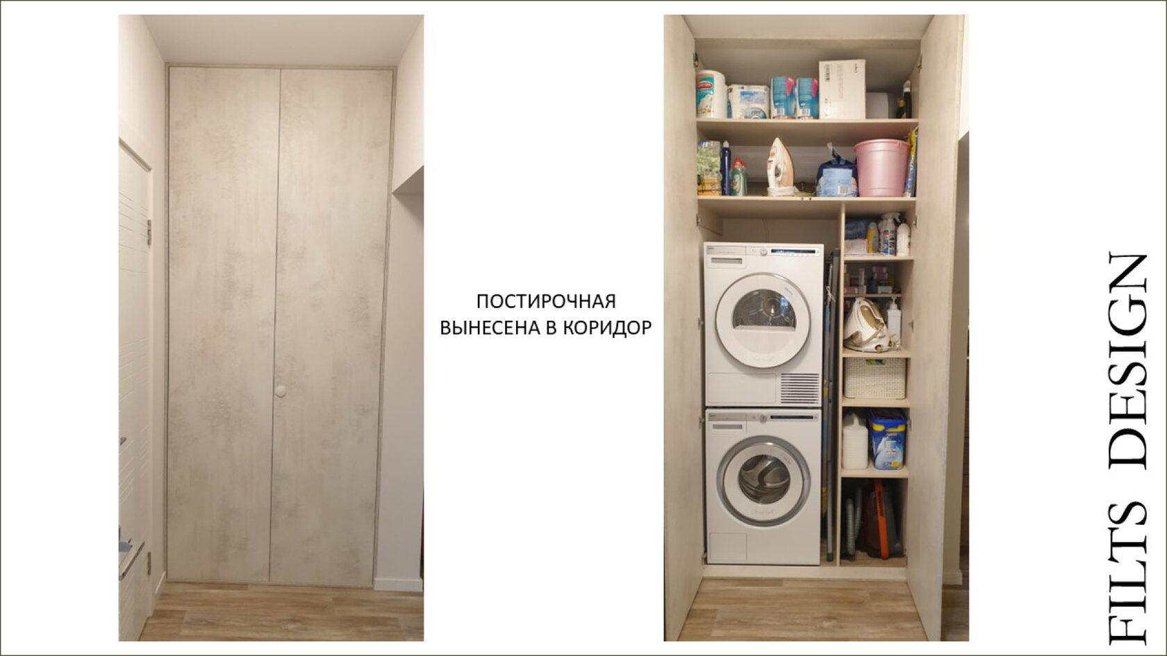 Конечно, учитывайте питание, подвод воды и слив для стиральной машинки. В такую нишу можно разместить только сушильную машинку, для нее потребуется лишь электричество.