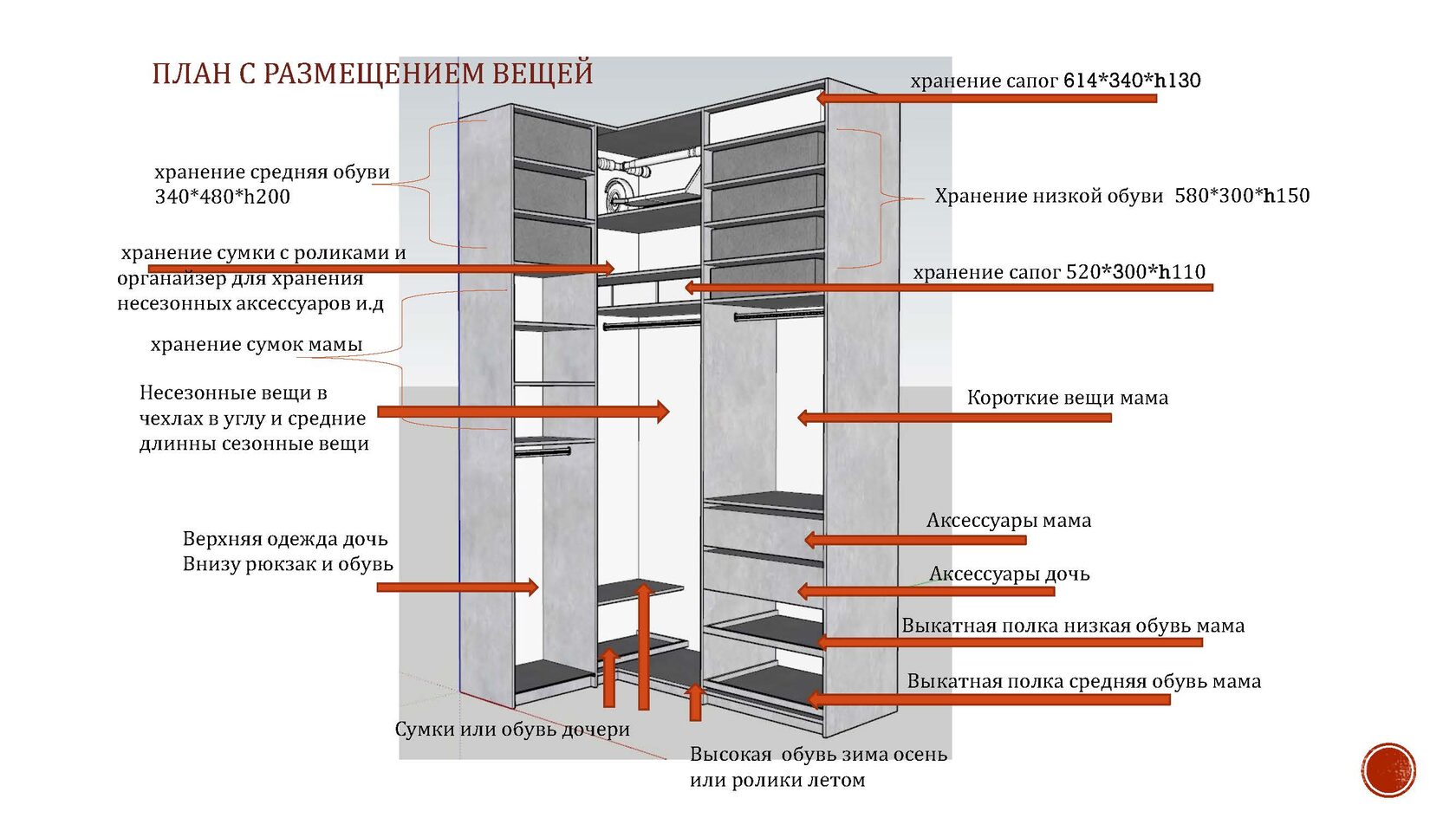 Чтобы такого не произошло перед тем, как вызвать замерщика и заказывать шкаф давайте разберем с вами основные шаги, которые нужно сделать, чтобы грамотно организовать хранение вещей. Разбирать будем на примере моего проекта.