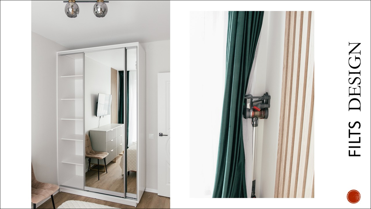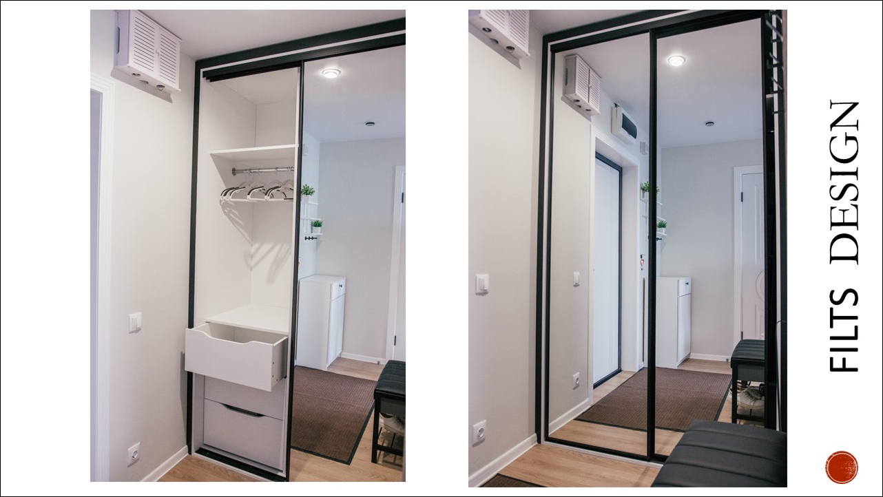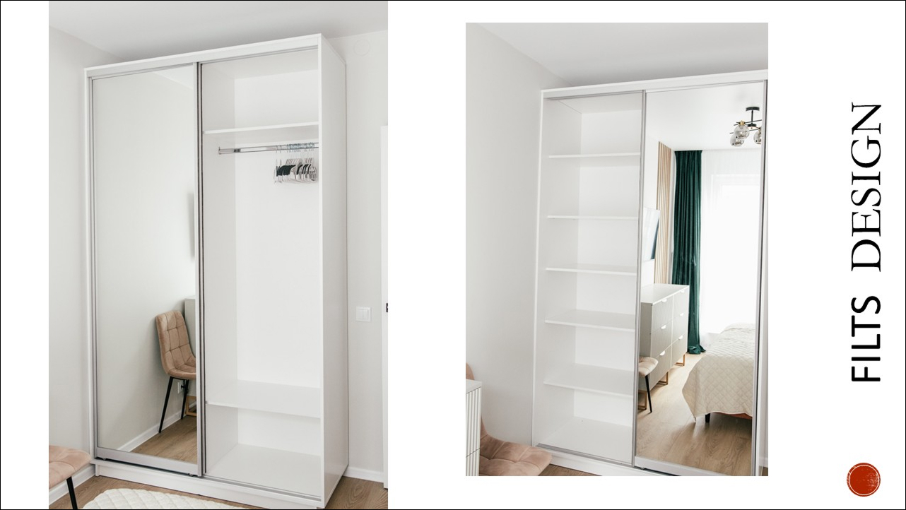 Шкаф с зеркальными дверями — увеличивает комнату и добавляет функционала.