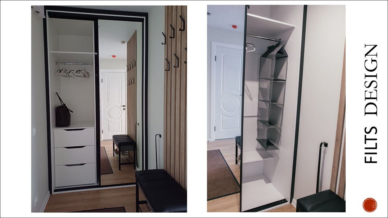 Банкетка и закрытые шкафы это про практичность и аккуратность.